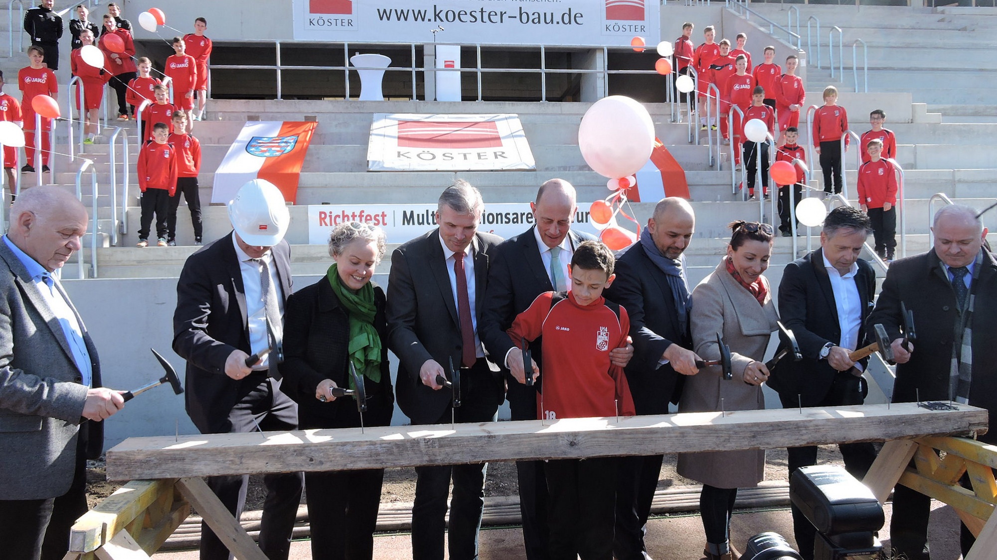 Am heutigen Freitag fand das Richfest der neuen Mutlifunktionsarena in Erfurt statt. Zu der Feierlichkeit versammelten sich zahlreiche Gäste vor der neu erbauten Osttribüne.