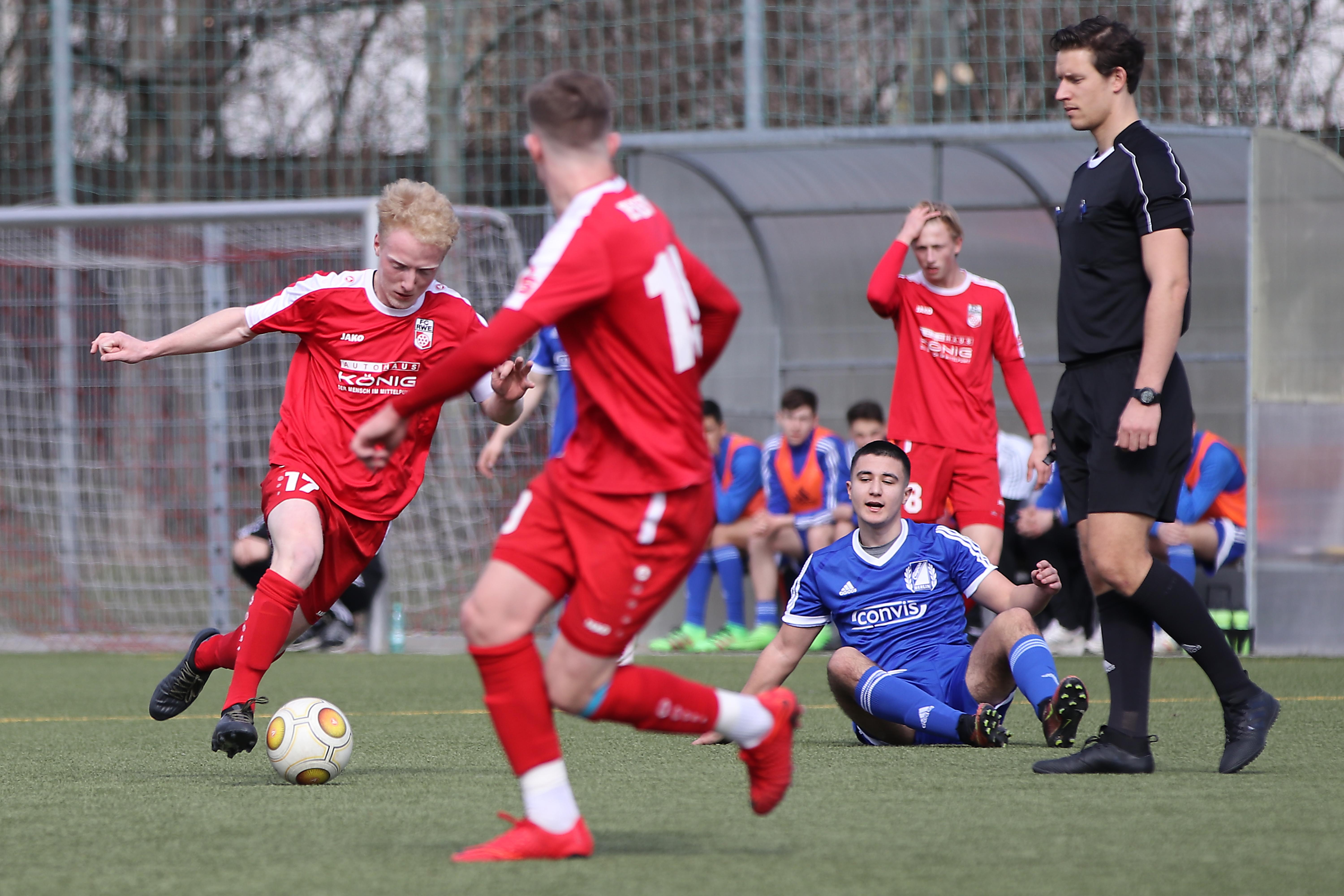 Am Samstag trafen unsere A-Junioren auf den SV Empor Berlin und könnten im ersten Heimspiel des Jahres den ersten Heimsieg verbuchen. In Hälfte eins waren die Gäste aus Berlin die aktivere Mannschaft und gingen verdient mit 0:1 (37.Minute) in Führung. Nach dem Seitenwechsel präsentierte sich die U19 dann besser und hatte mehr Spielanteile, die prompt in Tore umgemünzt werden konnten. Innerhalb von zwei Minuten stellten die Erfurter Oeftger (66. Minute) und Comes (68. Minute) auf 2:1 und brachten die Rot-Weißen in Front. In der 85. Spielminute konnte Oeftger mit seinem zweiten Treffer dann den Heimerfolg besiegeln und traf zum 3:1 Endstand. Durch diesen Sieg haben unsere U19 nun 25 Punkte in 15 Spielen gesammelt und belegen aktuell den siebten Tabellenplatz.